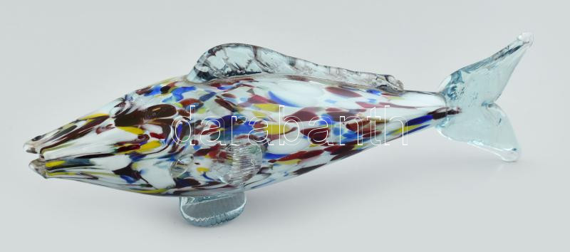 Murano üveg hal, hibátlan, jelzés nélkül, anyagában színezett, h: 27,5 cm