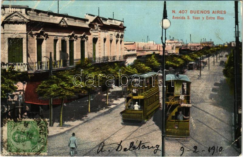 1910 Buenos Aires, Avenida S. Yuan y Entre Rios / street view, double decker trams (EB)