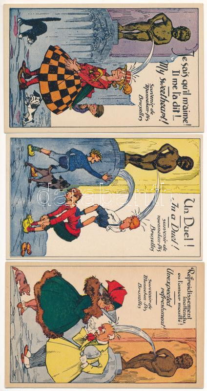 Bruxelles, Brussels; - 3 db RÉGI humoros művészlap a brüsszeli Manneke...