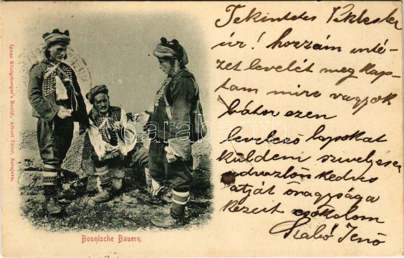 1898 (Vorläufer) Bosnische Bauern. Ignaz Königsberger's Nachf. Al... https://www.darabanth.com/en/440-Online-auction/440.0/Postcards/Folklore~2000021/1898-Vorlaufer-Bosnische-Bauern-Ignaz-Konigsbergers-Nachf-Albert-Thier-Bosnyak-nepviselet~II2892077