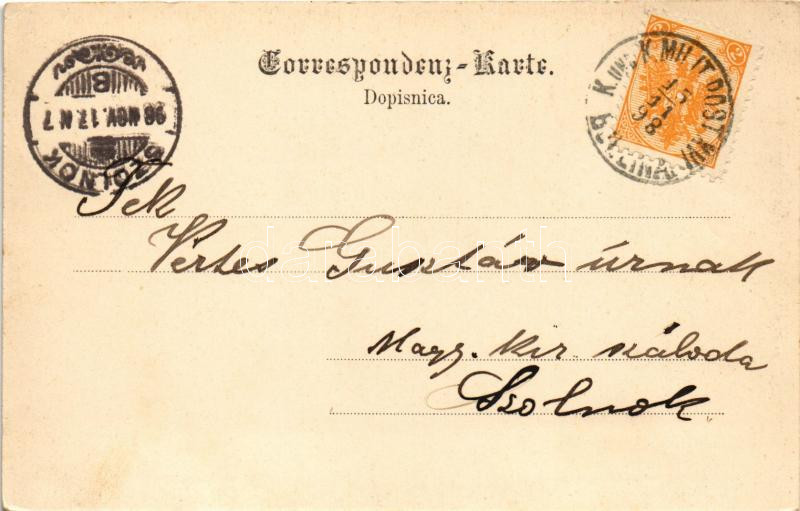 Description: 1898 (Vorläufer) Bosnische Bauern. Ignaz Königsberger's Nachf. Albert Thier / Bosnyák népviselet / Bosnian folklore + "K. und K. Milit. Post XVI Bjelina" (EK)