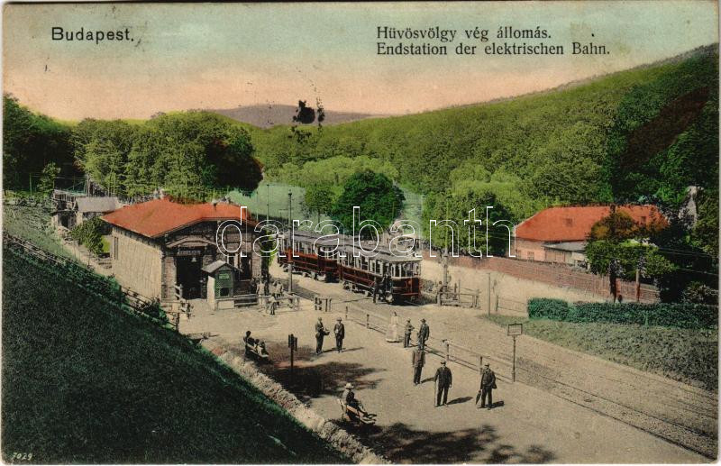 1908 Budapest II. Hűvösvölgyi villamos végállomás. J. Schwarz kiadása ...