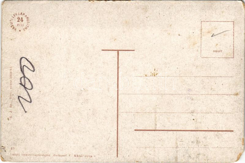 Description: Budapest V. Fürdő utca, Diana fürdőről kapta a nevét, (ma József Attila utca és Széchenyi István tér sarka), lebontották majd helyén építették fel a Pesti Magyar Kereskedelmi Bankot, Kereskedelmi Kar épülete, villamos. Vasúti levelezőlapárusítás 43. (EM)