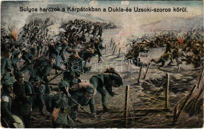 1915 Súlyos harcok a Kárpátokban a Dukla és Uzsoki-szoros körül / WWI Austro-Hungarian K.u.K. military art postcard (EK)