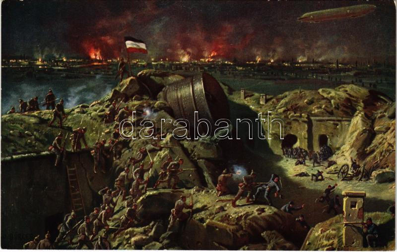 Lüttich. Erobert 7. August 1914 durch General v. Emmich / WWI German military art postcard, Capture of Liege s: W. Bürger