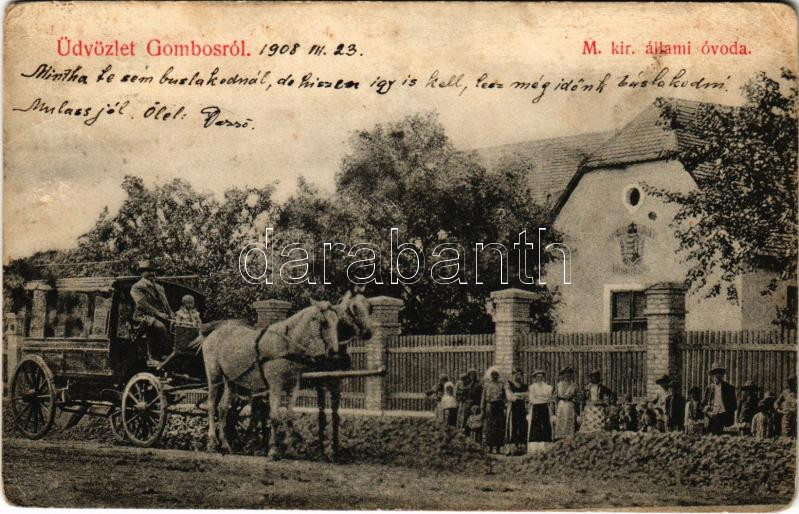 1908 Gombos, Bogojeva; M. kir. állami óvoda, lovas hintó / kindergarten, horse chariot (EK)