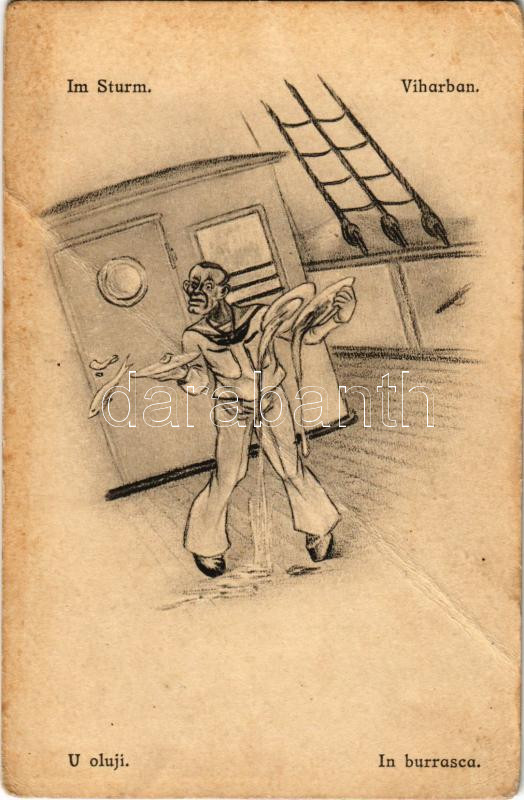 Viharban / Im Sturm. K.u.K. Kriegsmarine Matrosenhumor / U oluji / In ... https://www.darabanth.com/en/440-Online-auction/440.0/Postcards/Warships~2000023/Viharban-Im-Sturm-KuK-Kriegsmarine-Matrosenhumor-U-oluji-In-burrasca-Austro-Hungarian-Na~II2894308
