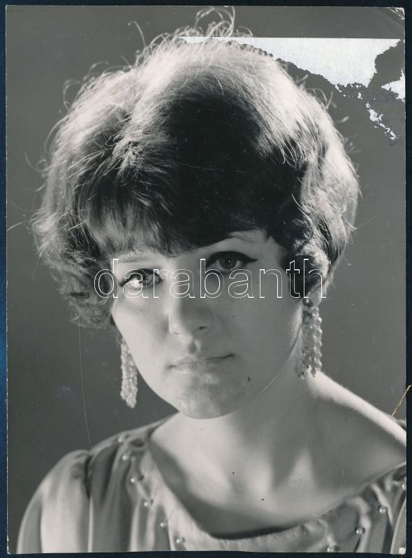 1968 Nagy Éva táncdalénekesnő aláírása az őt ábrázoló fotó hátoldalán, fotó felülete sérült