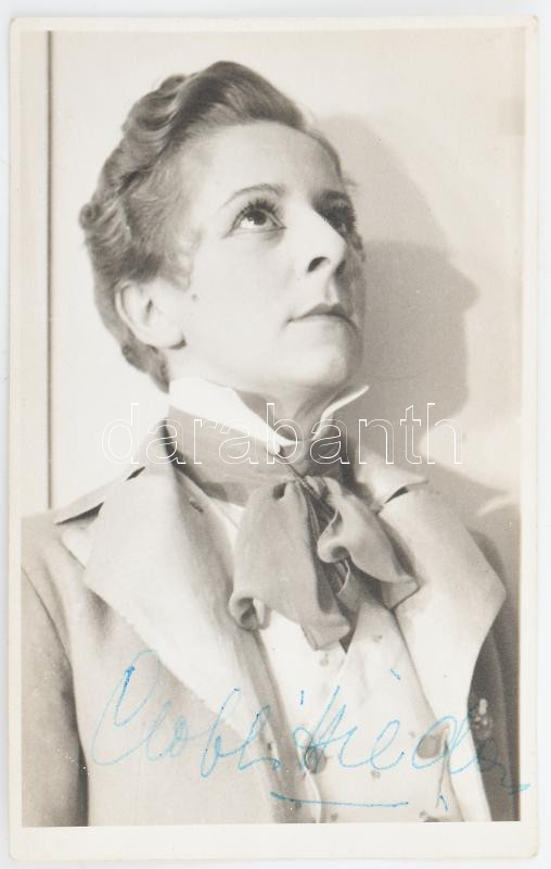 Gobbi Hilda színésznő autográf aláírása, őt magát ábrázoló fotólapon