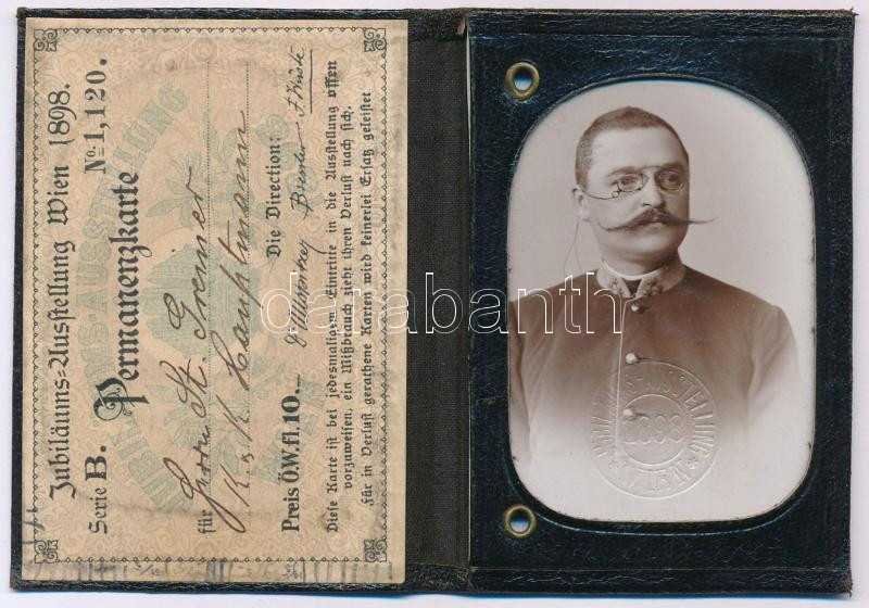 1898 K. u.k. főhadnagy részére kiállított fényképes belépőkártya a bécsi jubileumi kiállításra, szép állapotban