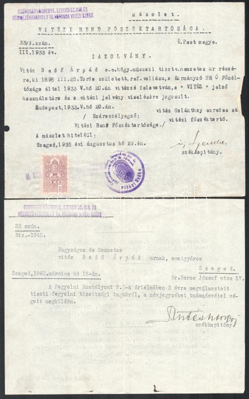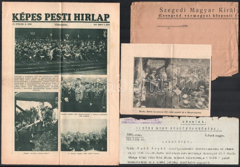 cca 1935 Vitézi rend szervezetével kapcsolatos papírok: Igazolvány, fe... https://www.darabanth.com/en/441-Online-auction/441.0/Art-and-other-collectibles/Military~500052/cca-1935-Vitezi-rend-szervezetevel-kapcsolatos-papirok-Igazolvany-fegyelmi-szek-megvalaszta~II2903418