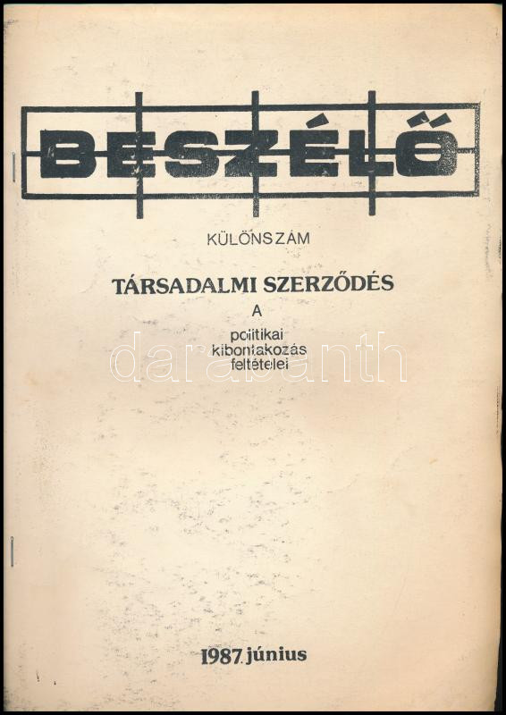 1987 A Beszélő c. szamizdat kiadvány különszáma: "Társadalmi szerződés... https://www.darabanth.com/en/441-Online-auction/441.0/Art-and-other-collectibles/Printed-Materials~500055/1987-A-Beszelo-c-szamizdat-kiadvany-kulonszama-Tarsadalmi-szerzodes-avagy-A-politikai-k~II2901972