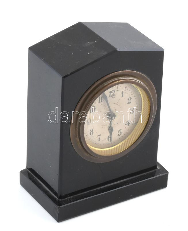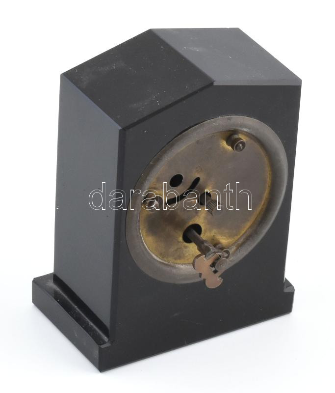 Régi asztali óra öntött fekete üveg (?) testtel, kopásokkal, nem működ...