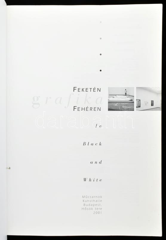 Description: Feketén-fehéren. / In Black and White. (Kiállítási katalógus). Szerk.: Gelencsér Rothman Éva. Bp., 2001, Műcsarnok. Gazdag képanyaggal illusztrálva. Kiadói papírkötés, kissé kopottas borítóval.