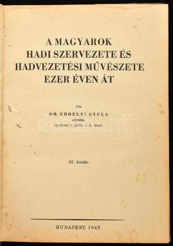 Erdélyi Gyula: A magyarok hadi szervezete és hadvezetési művészete eze... https://www.darabanth.com/en/441-Online-auction/441.0/Books/Books-History~500037/Erdelyi-Gyula-A-magyarok-hadi-szervezete-es-hadvezetesi-muveszete-ezer-even-at-Bp-1943-H~II2903300