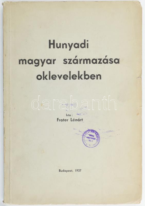 Frater Lénárt: Hunyadi magyar származása oklevelekben. Bp.,1937, (Vác,... https://www.darabanth.com/en/441-Online-auction/441.0/Books/Books-History~500037/Frater-Lenart-Hunyadi-magyar-szarmazasa-oklevelekben-Bp-1937-Vac-Kapisztran-Nyomda-124~II2904988