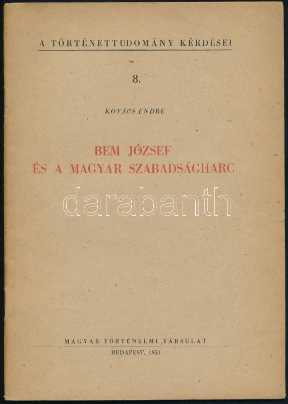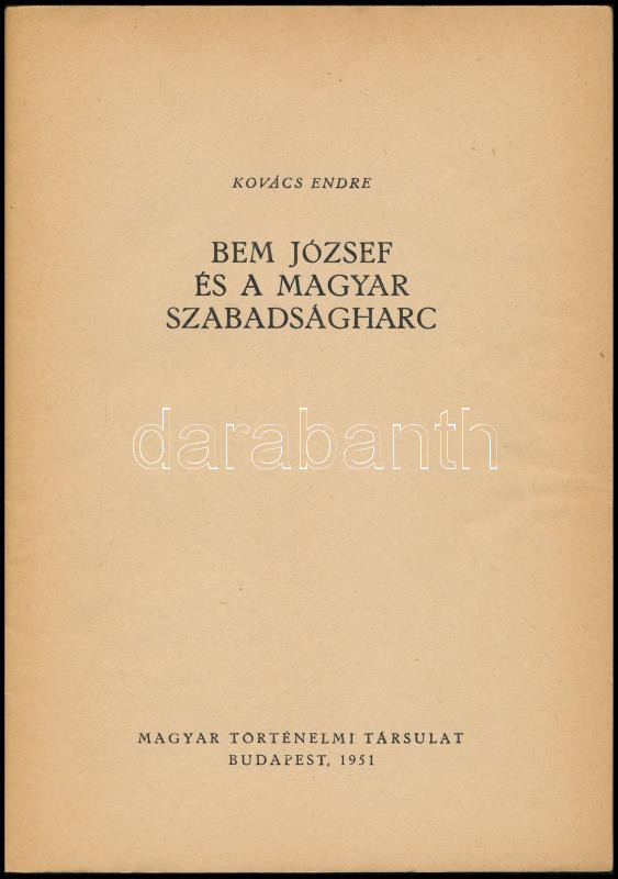 https://www.darabanth.com/en/441-Online-auction/441.0/Books/Books-History~500037/Kovacs-Endre-Bem-Jozsef-es-a-magyar-szabadsagharc-A-Tortenettudomany-Kerdese-I-Bp-1851~II2905324