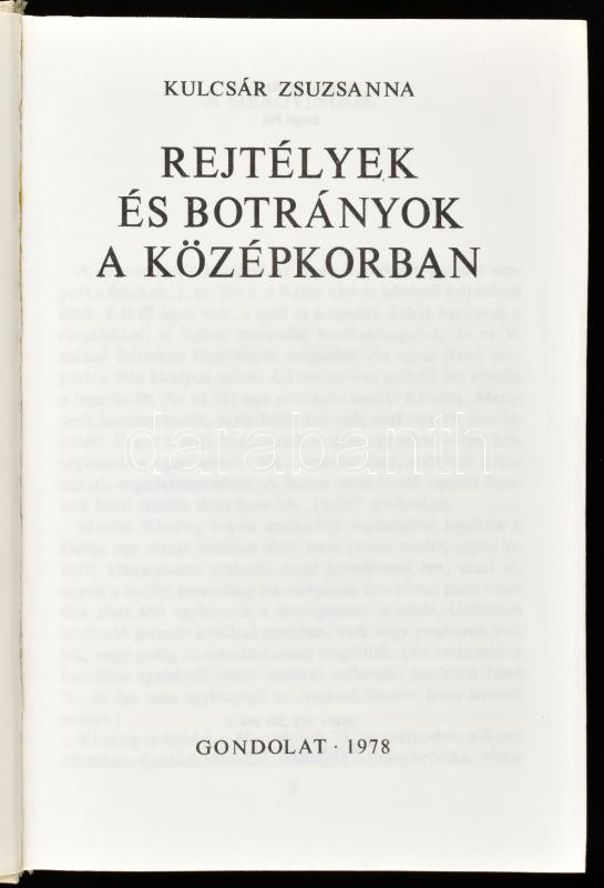 Kulcsár Zsuzsanna. Rejtélyek és botrányok a középkorban. Bp., 1978, Go... https://www.darabanth.com/en/441-Online-auction/441.0/Books/Books-History~500037/Kulcsar-Zsuzsanna-Rejtelyek-es-botranyok-a-kozepkorban-Bp-1978-Gondolat-Fekete-feher-kC3~II2900752