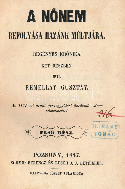 Regényes krónika ... https://www.darabanth.com/en/441-Online-auction/441.0/Books/Books-History~500037/Remellay-Gusztav-A-nonem-befolyasa-hazank-multjara-Regenyes-kronika-ket-reszben-Az-1132~II2900492