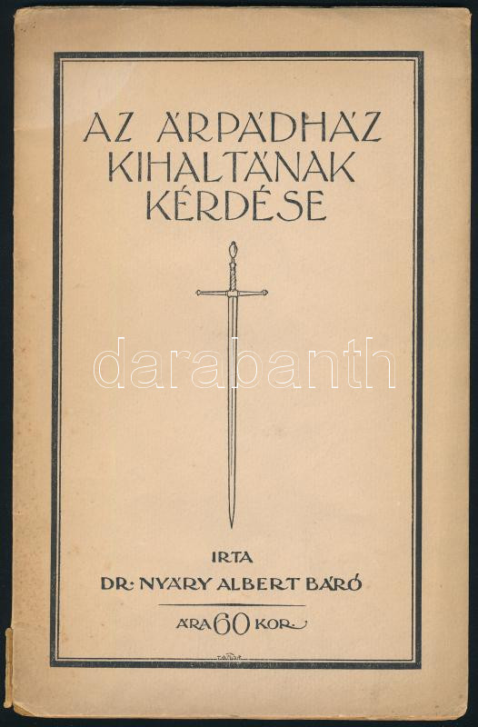 dr. Nyáry Albert Báró: Az Árpádház kihalásának kérdése. Bp, 1922., k.n... https://www.darabanth.com/en/441-Online-auction/441.0/Books/Books-History~500037/dr-Nyary-Albert-Baro-Az-Arpadhaz-kihalasanak-kerdese-Bp-1922-kn-Heller-K-es-Tsa~II2898435