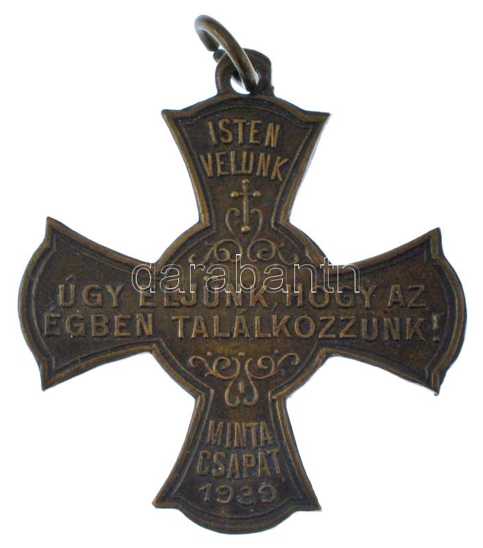 1939. "Isten velünk - Úgy éljünk, hogy az égben találkozzunk! - Minta Csapat 1939" bronz cserkész medál füllel (31x29mm) T:AU
