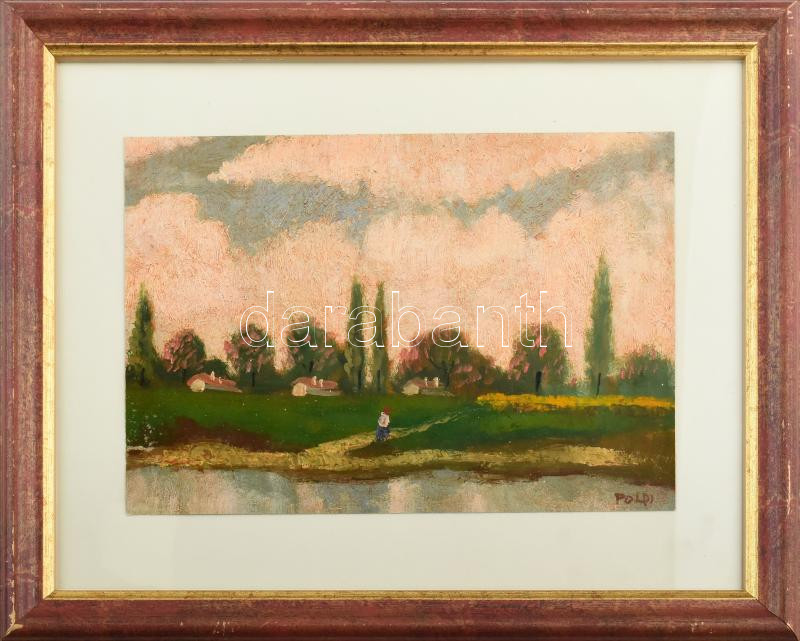 Böhm Lipót, Poldi (1916-1995): Hazafelé. Olaj, papír, jelzett, üvegezett fakeretben, 13,5×20 cm