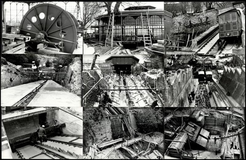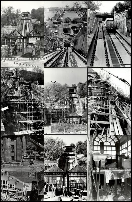 1985 és 1986 Budapest, sikló építés a budai várhegy oldalában (műszaki fotók, látképek, riportképek, életképek vegyesen), 21 db vintage fotó, ezüst zselatinos fotópapíron, datált, jelzett, 14x9 cm