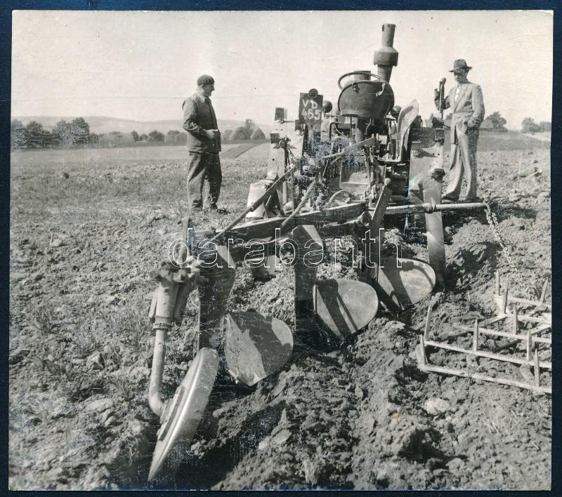 Szántás Hoffherr traktorral, fotó, 9×10 cm
