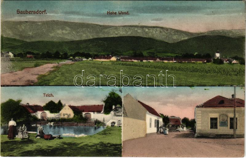 Saubersdorf, Hohe Wand, Teich, Strasse. Verlag Caspar Rumpler / lake, street, shop