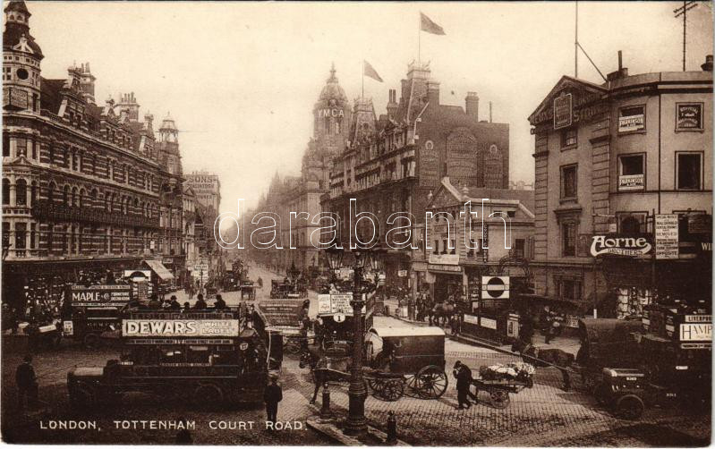 London, Tottenham court road, automobiles, Parkinson and son, Horne brothers shop's, Court cinema