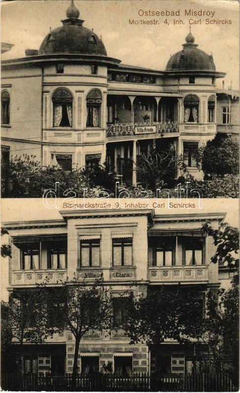 Description: Miedzyzdroje, Misdroy; Ostseebad / Villa Friede (Moltkestrasse 4. Inhaber Carl Schircks) and Villa Clara (Bismarckstrasse 9, Inhaber Carl Schircks) (EK)