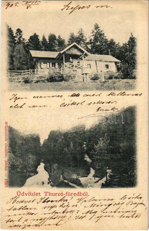 1905 Thurzófüred, Kupele Turzo (Gölnicbánya, Gelnica); nyaraló, látkép...