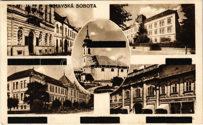 Rimaszombat, Rimavská Sobota; templom, Teleszniczky Ferenc kalap üzlet...
