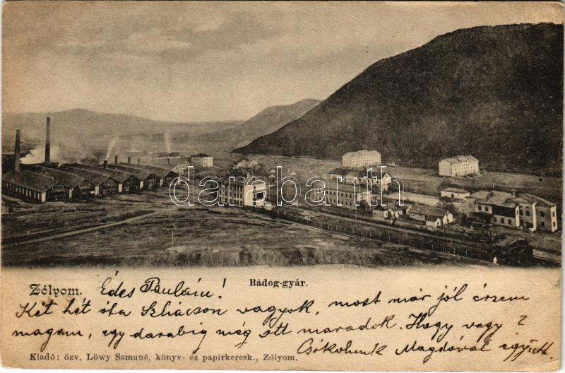 https://www.darabanth.com/en/441-Online-auction/441.0/Postcards/Slovakia~1500006/Zolyom-Zvolen-Badoggyar-Ozv-Lowy-Samune-kiadasa-tin-factory-EK~II2896765
