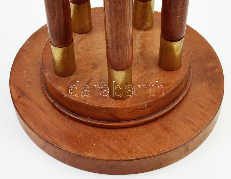 Description: Nagyméretű ötoszlopos fa posztamens, réz veretekkel, szép állapotban, d: 30 cm, m: 103 cm KIZÁRÓLAG SZEMÉLYES ÁTVÉTEL, NEM POSTÁZZUK! / ONLYPERSONAL COLLECTION AT OUR OFFICE!