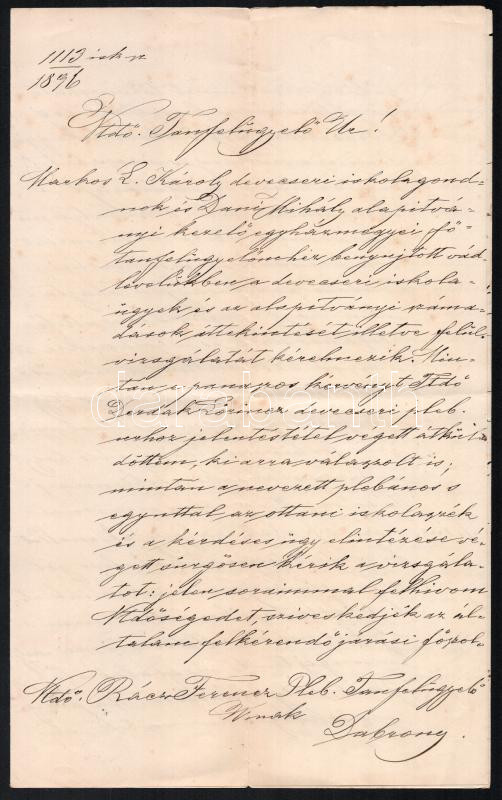 1897 Báró Hornig Károly (1840-1917) püspök által aláírt levél