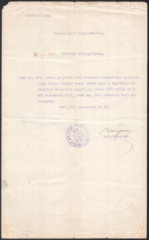 https://www.darabanth.com/en/442-Online-auction/442.0/Art-and-other-collectibles/Documents~500021/1917-Arad-polgarmestere-Varjasy-Lajos-kesobbi-miniszter-altal-alairt-irat~II2909864