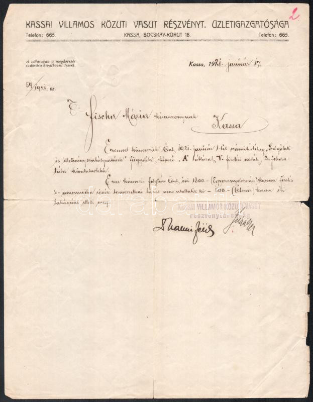 https://www.darabanth.com/en/442-Online-auction/442.0/Art-and-other-collectibles/Documents~500021/1921-jan-17-Kassa-a-Kassai-Villamos-Kozuti-Vasut-Rt-altal-kiallitott-kinevezesi-okirat-ma~II2908667