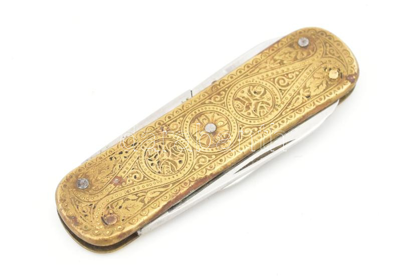 Gazdag díszítéssel réz bicska, kopásokkal, h: 5,5 cm