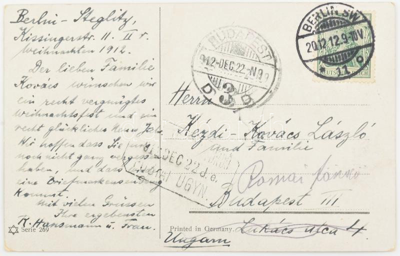 Description: 1912 Berlin, Raoul Hausmann (1886-1971) osztrák képzőművész, költő saját kezűleg megírt képeslapja, Kézdi-Kovács László (1864-1942) festőművész részére címezve / Autograph postcard of Raoul Hausmann (1886-1971) Austrian artist and poet