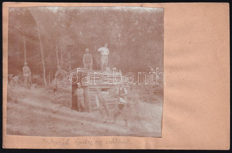 1917 Fedezék építése az erdőben Tettey Emil tüzérfőhadnagy fotója tábo...