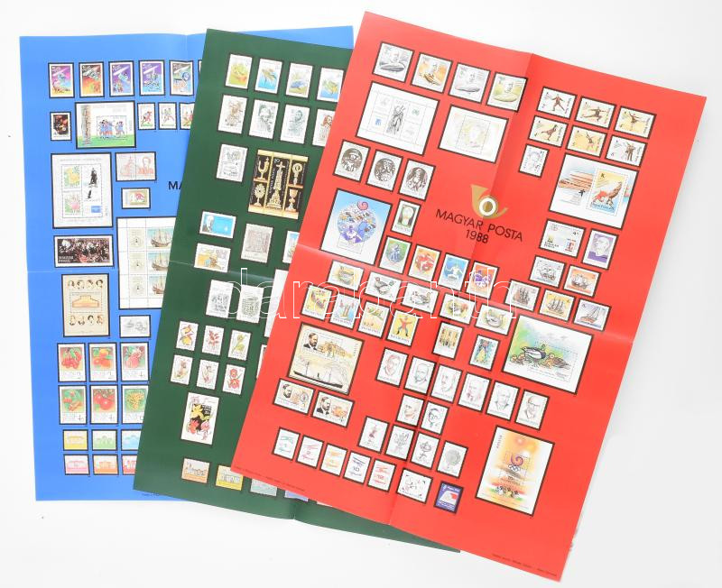 3 db Magyar Posta kibocsátott bélyegei plakát, 1986/87/88, hajtva, 56x39 cm