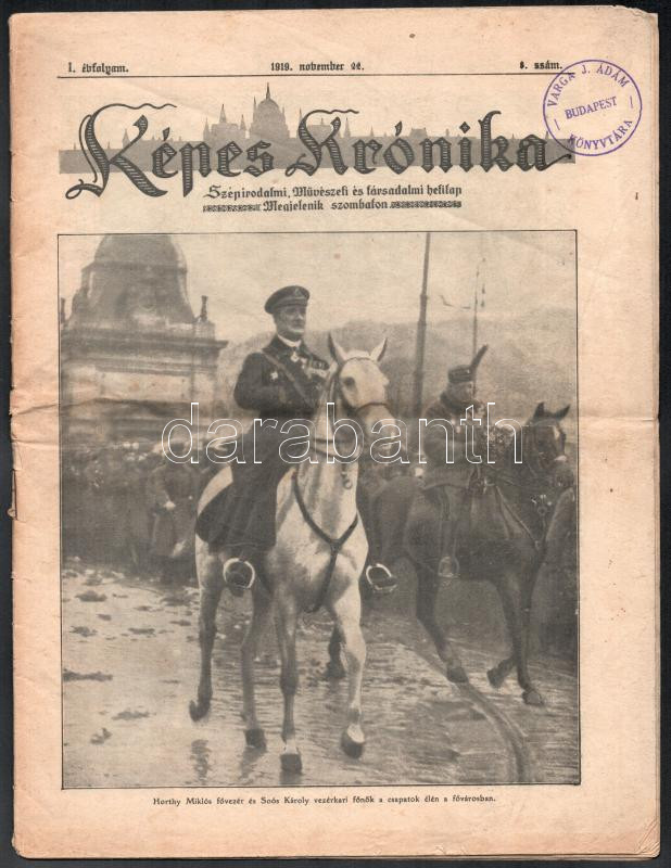 1919 Képes Krónika I. évf. 8. sz., 1919. nov. 22., a címlapon Horthy M... https://www.darabanth.com/en/442-Online-auction/442.0/Art-and-other-collectibles/Printed-Materials~1000005/1919-Kepes-Kronika-I-evf-8-sz-1919-nov-22-a-cimlapon-Horthy-Miklos-bevonulasa-a-fovC3~II2908804