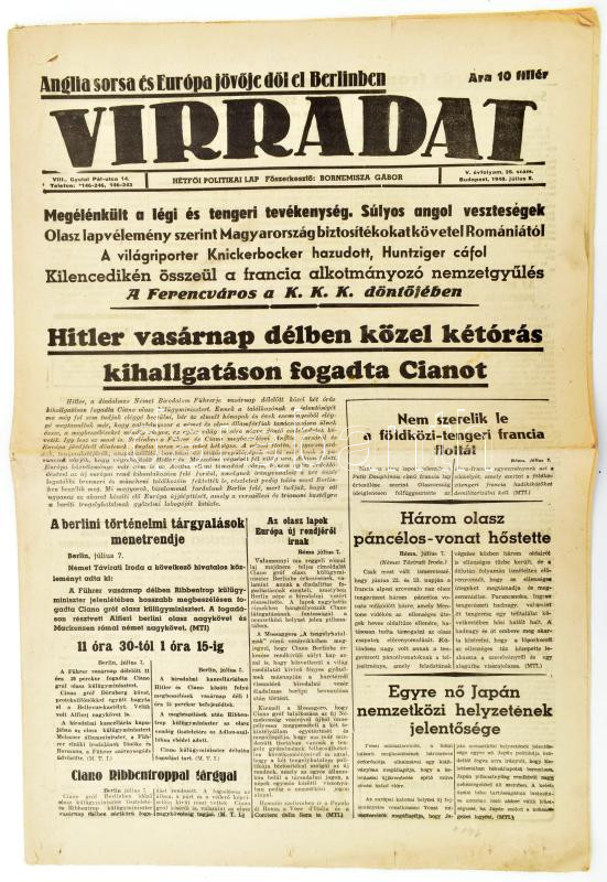 https://www.darabanth.com/en/442-Online-auction/442.0/Art-and-other-collectibles/Printed-Materials~1000005/1940-A-Virradat-cimu-ujsag-V-evfolyamanak-28-szama-cimlapon-Hitler-fogadta-Cianot~II2911544
