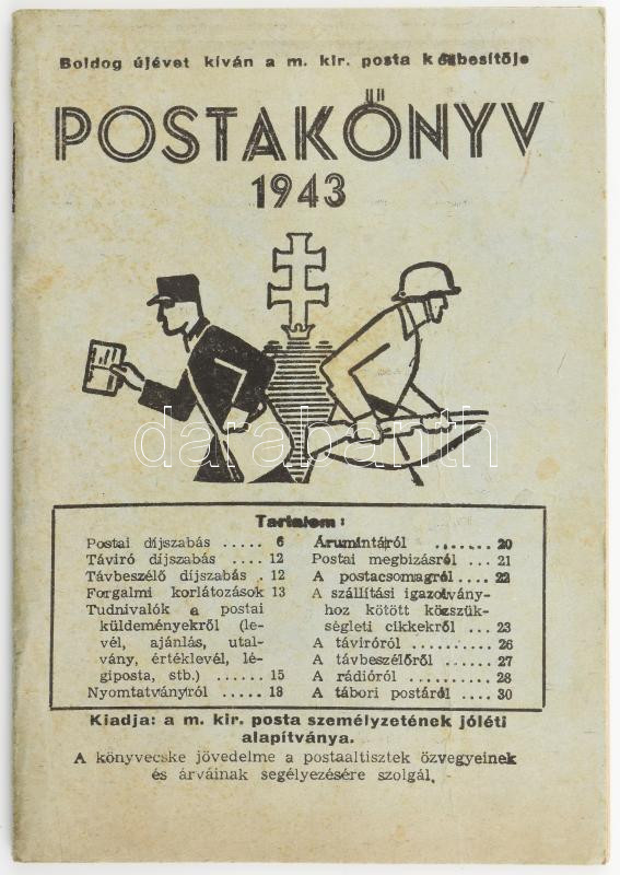 1943 Postakönyv. Kiadja: a m. kir. posta személyzetének jóléti alapítv... https://www.darabanth.com/en/442-Online-auction/442.0/Art-and-other-collectibles/Printed-Materials~1000005/1943-Postakonyv-Kiadja-a-m-kir-posta-szemelyzetenek-joleti-alapitvanya-Benne-naptarral-~II2912797