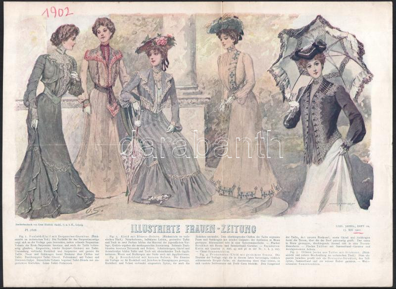 Description: cca 1902-30 össz. 3 db szecessziós és art deco női divatlap (2db kétoldali), litográfia vagy ofszet, papír, lapszéli apró szakadásokkal. 34x27 és 40x29 cm közötti méretekben.