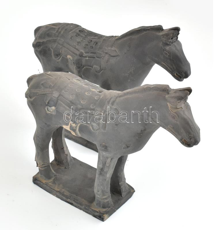 XX. sz.,Terrakotta hadsereg 4 darabos másolat szett, harcosok és lovak, kis kopottsággal m: 17 cm