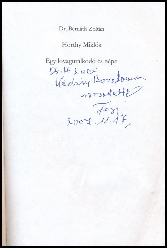 Dr. Bernáth Zoltán: Horthy Miklós. Egy lovaguralkodó és népe. Gyöngyös... https://www.darabanth.com/en/442-Online-auction/442.0/Books/Books-History~1000010/Dr-Bernath-Zoltan-Horthy-Miklos-Egy-lovaguralkodo-es-nepe-Gyongyos-2007-Pallas-AntikvC3~II2911229