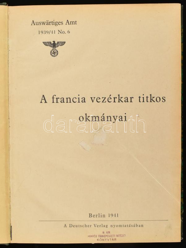 A francia vezérkar titkos okmányai. Auswärtiges Amt 1939/41 No. 6. Ber... https://www.darabanth.com/en/442-Online-auction/442.0/Books/Books-Military~1000011/A-francia-vezerkar-titkos-okmanyai-Auswartiges-Amt-193941-No-6-Berlin-1941-Deutscher-Verlag~II2907785