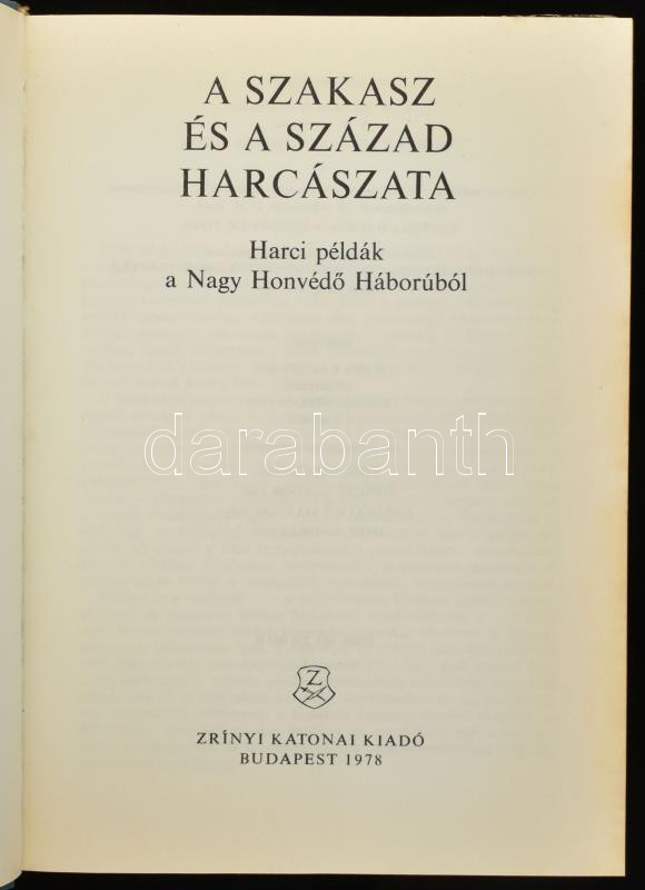 A szakasz és a század harcászata. Harci példák a Nagy Honvédő Háborúbó... https://www.darabanth.com/en/442-Online-auction/442.0/Books/Books-Military~1000011/A-szakasz-es-a-szazad-harcaszata-Harci-peldak-a-Nagy-Honvedo-Haborubol-plus-A-zaszloalj-h~II2906997